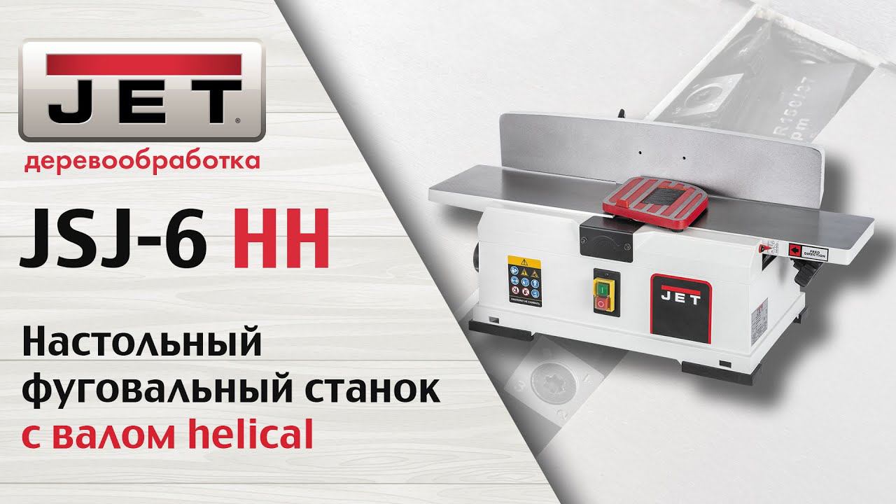 JSJ-6 HH — настольный фуганок с чугунными столами, мощным полуторакиловаттным коллекторным мотором и ножевым валом helical, наделяющим станок множеством достоинств и кардинально улучшающим его рабочие характеристики. На барабане установлено 14 лезвий, расположенных в виде двух спиралей так, чтобы усилие при снятии стружки возникало равномерно по всему обороту. В результате вибрации шум значительно ниже, чем у строгальных с прямыми длинными ножами.