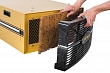 PM1200 – установка фильтрации воздуха в мастерских и производственных помещениях от древесной пыли, взвеси ЛКМ и прочих механических загрязнений. Встроенный мотор с крыльчаткой обеспечивает принудительную циркуляцию через фильтры: наружный электростатический 5-микронный для задержания крупного мусора, внутренний 1-микронный большой емкости, сделанный в виде мешка из нескольких «карманов»-секций, и выходной «диффузионный» (рассеивает выходной поток). Все эти фильтры допускают многократную очистку сжатым воздухом, но также поставляются и новыми. Их извлечение и замена максимально просты – никаких инструментов не нужно. Для напоминания о сроке технической инспекции предусмотрен световой индикатор, дающий сигнал после 200-часовой наработки, рядом с ним кнопка обнуления сервисного интервала.