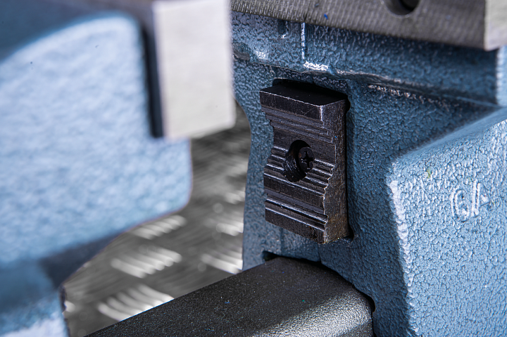 Слесарные тиски, модель 744, являются универсальной оснасткой для выполнения слесарных работ широкого профиля. Приспособление изготавливается из литейного чугуна, имеет прочную и надежную конструкцию. Вес приспособления составляет 16,5 кг. Слесарные тиски этой модели оснащены поворотным механизмом, имеют рабочий ход 114 мм, и обеспечивают надежную фиксацию заготовок различной формы в удобном положении. Наличие двух стопорных механизмов создают стабильное положение заготовки в процессе обработки. Приспособление оборудовано губками, рассчитанными на крепеж заготовок различной формы, включая заготовки и изделия цилиндрической формы, прутки и трубы.