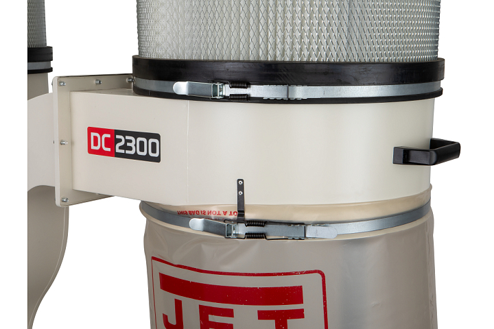 JET DC-2300СК-T — высокопроизводительная вытяжная установка с двумя ёмкостями для мусора, способная обслуживать до трех деревообрабатывающих станков одновременно (оптимально — рейсмусовые, фуговальные, фрезерные и прочие, производящие крупную фракцию отходов в большом количестве). Укомплектована мощным надежным двигателем, подходящим для продолжительного режима эксплуатации, «улиткой» и крыльчаткой из стали, которые не повреждаются при прохождении сучков и щепок. Для подключения рукавов предусмотрено три патрубка диаметром 100 мм; если разветвитель снять, то можно подключить один рукав большого (150 мм) диаметра.