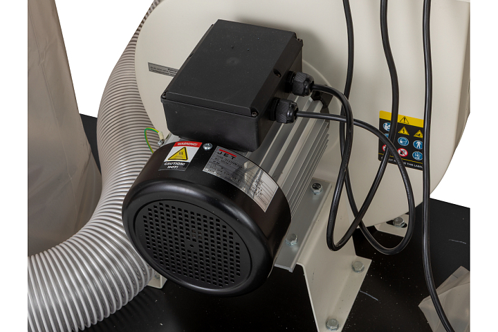 Установка относится к профессиональному классу и сделана с расчетом на продолжительную интенсивную эксплуатацию: у нее надёжный асинхронный двигатель, металлическая крыльчатка, способная пропускать сучки и щепки без риска ее повреждения. Емкий пылесборник.